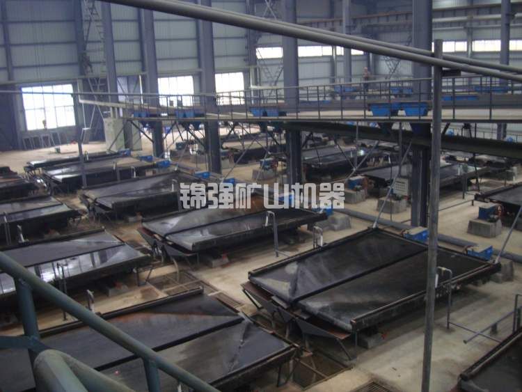 黑鎢礦的重選通常采用多級跳汰、多級搖床和中礦再磨的重選過程。也就是說,經過振動篩分級后,合格礦物進行多級跳汰,產出跳汰重選毛砂,粗粒級跳汰尾礦進入磨機再磨,細粒級跳汰尾砂進入多級搖床進行分類,產出搖床重選毛砂,搖床尾礦排入尾礦庫,搖床中礦返回再磨再選,跳汰和搖床重選毛砂進入精選作業。